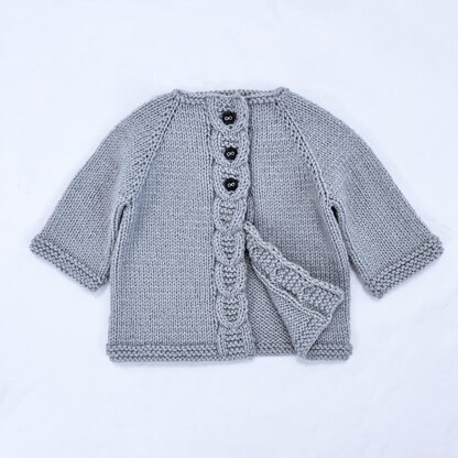 This is a lovely baby open cardigan with a cable motif on both side edges. The cardigan is knitted flat (back and forth), top - down with raglan sleeves and no seaming required. The cardigan fastens with 3 buttons for all sizes. It’s suitable both baby girls and baby boys. The easy-to-remember pattern makes this baby cardigan a quick and easy project to make.