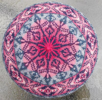 Fluorescent pinks paired with haunting purples and blues--a sunset in December is a show-stopper! This classic Fair Isle design uses 8 colors.