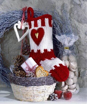 Decorative Christmas Socks with Heart in Schachenmayr Boston - 5833A