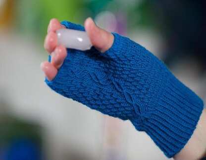 Use stockinette gauge to determine needle size needed to work the pattern. The pattern stretches to accommodate larger hands, but a loose gauge will make for a large, sloppy fitting mitt. Needles with very pointy tips and cabling without a cable needle will make these stitch patterns much more efficient to work!