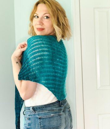Whether you’re a beginning knitter or an experienced one looking for an easy project, this fun triangular shawlette fits the bill. Worked side to side in ANY weight yarn, it combines simple garter and stockinette for a snug wrap with a straightforward construction. All the fun comes from dropping stitches and letting them unravel (gasp!), creating horizontal ladders that give your project drape and visual interest. Perfect for gradient colorways, you’ll love how the hue transitions from one side to the other.