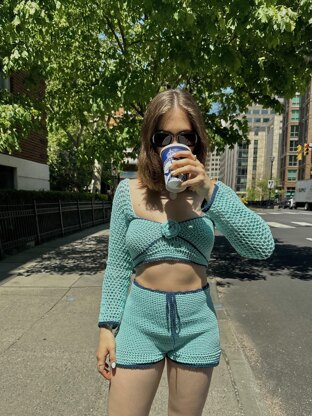 The Delara Shorts are cute, beginner-friendly crochet shorts with two-tone border details. Pair with the Delara Top Crochet Pattern to complete the set.