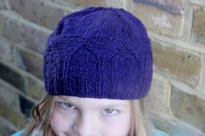 I recently visited India for the first time since living there as a child. It was an unbelievable experience to go back and see this amazingly wonderful and unique country through adult eyes. The trip was full of visual inspiration – the pictures I took were mostly of architecture, inlayed panels, delicate pierced screens. When I some of the tombs in Delhi, I immediately thought of hats. I used the pattern around the lower edge of these domes to create the stitch pattern for this hat. Worked in a simple knit and purl design, with a few cable crosses thrown in for good measure, this is a good hat for a beginner looking to try some new techniques. Sample shown was worked in Elspeth Lavold Silky Wool.