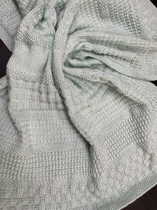 This Baby Blanket is a super easy pattern consisting of only knit and purl stitches, making it great for the focussed beginner. It is a variation of different stitch patterns, knitted in order and then mirrored to complete this lovely baby blanket.