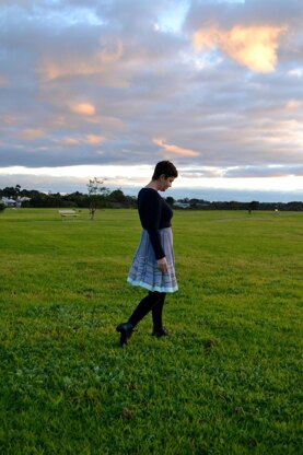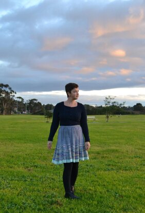 This 8 panel skirt comes with the options for a demure half circle or a three quarter circle for maximum twirl factor. Knit seamlessly in the round, this skirt includes full instructions to complete an enclosed elastic waistband which ensures this skirt stays put no matter what and also makes sure the fit is perfect. A simple but pretty lace detail shapes the skirt panels and hides the increases in the pattern. This skirt is designed to work well when striping different coloured yarn and is great for stash busting!