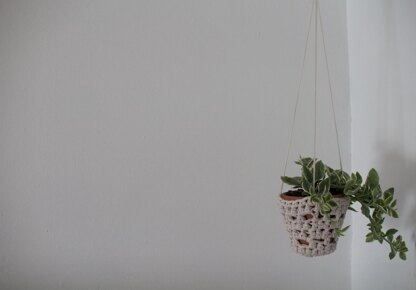 This pattern comes with the instructions to complete a hanger for both a 3 inch diameter pot and a 6 inch diameter pot. This pattern is made holding the yarn double stranded and any bulkier sized 4 yard or slimmer sized 5 yarn will do the trick!