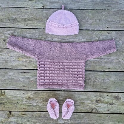 Denver No 2 is a babyset in 3 pieces. You have a sweater, a hat and booties.