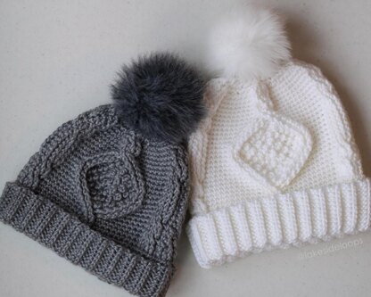 Classic yet trendy … a crochet cable hat is a must have Winter accessory. Try this new take on the classic cable look with a diamond design in the center and beautiful cable twists all around the back. This design is advanced . . perfect for the seasoned crocheter who’s looking to take their cable crochet game to the next level. With sizes for the whole family you and your loved ones can all wear this warm timeless piece.