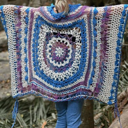 This spectacular poncho transforms 2 mandalas (of your choice, 1 included) into a piece of wearable art.