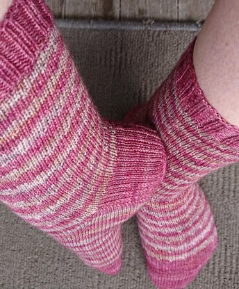 Desert Spring socks feature a slip stitch stripe pattern on the leg and instep allowing you to use any two colours together.