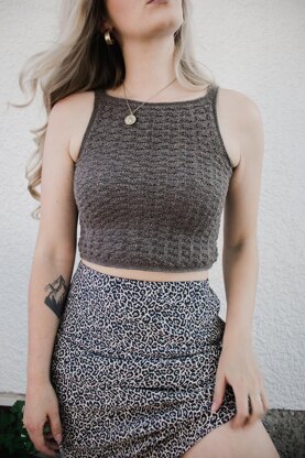 This is an approachable, easy-level crochet pattern with a sophisticated fit. The high neckline and solid fabric provide great coverage, bringing a level of functionality and practicality to this design for regular, everyday wear without feeling too exposed. A few simple finishing rows are worked along all the raw edges to add a refined, store-bought look that can be hard to find in crochet pieces. The negative ease tricks the eye by creating the appearance of shaping in the upper portion of this tank top, while in fact, each panel is created entirely from two rectangles without any decreasing.