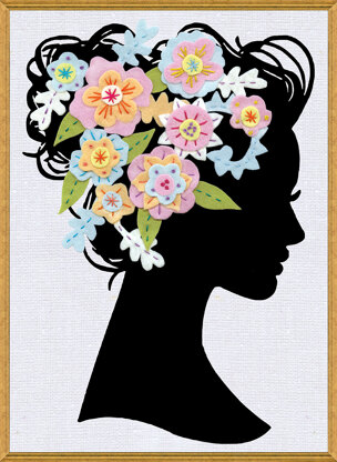 This elegant Wedgewood portrait-style silhouette of a woman's head will completely charm you. The Design Works Beauty Silhouette Needle Felting Kit features a floral arrangement in the woman's hair to be made up of pastel-colored felted shapes. This kit contains: