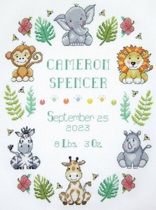 Design Works In the Jungle Birth Record Cross Stitch Kit - 28cm x 35cm