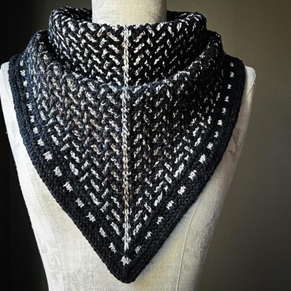 Destination Unknown Cowl is a top down, bandana style cowl. Its captivating herringbone stitch pattern is deceptively simple to create using the mosaic knitting technique, working with just one color per row. You’ll begin knitting flat with an I-cord tab cast on. After working multiple pattern repeats flat, you’ll join the ends and begin knitting in the round. This construction method requires no seeming.