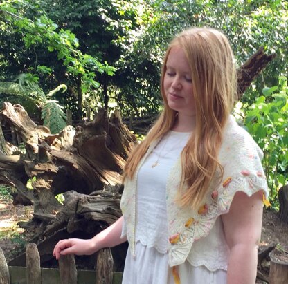 Diadem is a top down triangular shawl using a 100g skein of 4ply yarn and is embellished with hand-dyed silk ribbons.