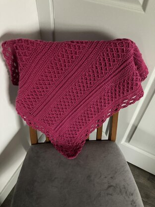 The pattern will create a beautiful baby blanket with a diamond textured pattern and a open diamond border.