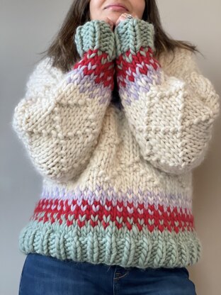 Needle- 15mm, 12mm, 10mm circular needles. Size- One size Approx Finished measurements: Length - 22" Chest- 44" Sleeve length- 20" Thanks for looking :) Disclaimer: The pattern and photos are property of Kysaa and subject to copyright. You are not allowed to rewrite, resell or distribute the pattern itself. If you would like to sell products made from my patterns please contact me for credit rights. Thanks!