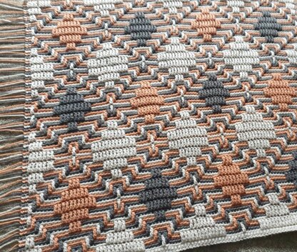 Diamond Haze uses the Overlay Mosaic crochet technique, but cycles through 3 colours, rather than the more usual 2.