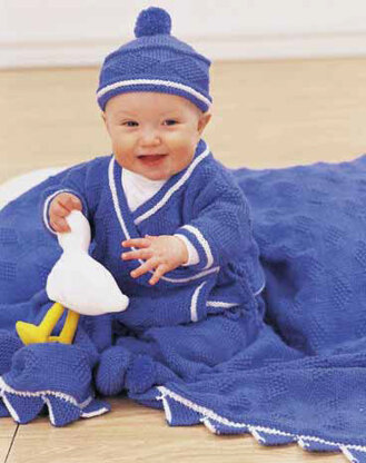 Diamond Jacket, Pants, Hat and Slippers Set in Patons Astra