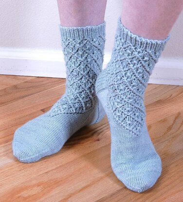 Wrapped stitches inside diamonds create this pretty lace pattern. Worked from the top down in two sizes.