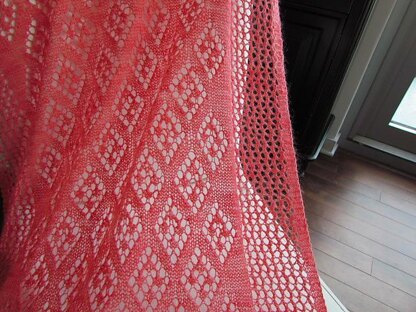 Diamond Mesh Lace Wrap is a diamond lace design framed by a complimentary mesh lace. The medium or large wrap is perfect for chilly nights or a smaller version that could double as a wrap or a large lace scarf. An ideal all-season accessory.