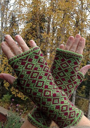 These fingerless gloves are stranded throughout so you have a double layer of warmth to keep your hands warm while you text to your friends! The braided edgings give a bit of pop and are very easy to do!