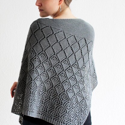 A beautiful lace creates eye-catching diamonds on this elegant triangular shawl. The lace section is created with 3 different lace motifs that transition seamlessly from and into each other.