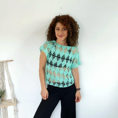 This Diamonds Lace Top is worked top down, using the raglan technique. This means it can be easily adjust in length and even width. Also you can add longer sleeves if you want.