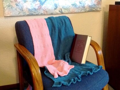 Knit them for yourself or as a comfort shawl for someone else. The alternating garter and ribbing sections, edged with a feminine ruffle, are easy enough for a beginner yet interesting enough for a more advanced knitter.