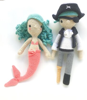 Diega the mermaid and Hank the pirate Amigurumi patterns