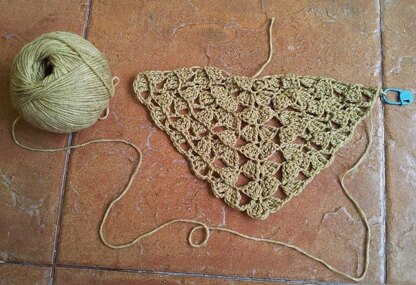 It is a top-down, triangle shawl. The chart is not drawn to scale. It is shown as a half-circle which it will turn out to be a triangle instead. Any yarn and colours will be great for it. Gauge is not important.