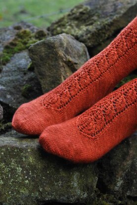 Knitted from the toe up, these socks feature an unusual placement of the arch increases - immediately next to the lace panel on each side.