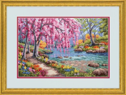 Dimensions Cherry Blossom Creek Cross Stitch Kit - 22.86cm x 30.48cm