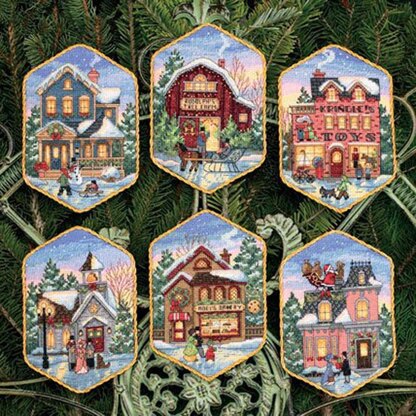 Dimensions Christmas Village Ornaments Cross Stitch Kit - 13cm (Set of 6)