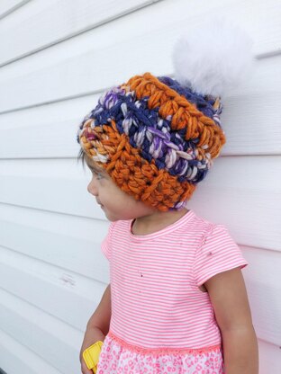 The Dinah Beanie is so fast to whip up, it makes the ideal market prep item! It uses one skein or less of super bulky yarn and the little added stitch differences add the perfect amount of texture and style! Leave out the Pom-Pom for a boyish version.