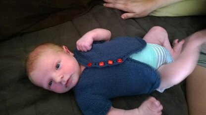 This simple yet charming baby cardigan is composed primarily of stocking stitch with a sweet eyelet border. The curved edges of the fronts adds a unique touch to the typical baby cardigan with the overlap and eyelets allowing you to place buttons wherever you like, or not at all.