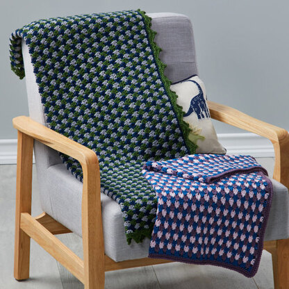 Valley Yarns Dionadair is a stunning blanket your little one will love dreaming cuddled under crocheted in Haydenville. Whether they are dreaming of defending a castle wrapped in dragon scales or protecting the lost island of Atlantis wrapped in mermaid scales, this simple stitch pattern gives this throw a unique look that resembles a scale pattern. Two border options are included. Valley Yarns Haydenville is an extraordinarily soft blend of superwash Merino and acrylic microfiber. Haydenville is ideal for cables and colorwork with its crisp stitch definition, a worsted weight yarn with a slight sheen. The pattern is in written form only.