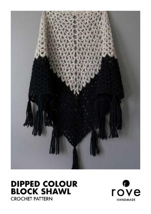 This simple v-stitch triangle shawl uses bold colour blocking and fringe to imitate the effect of being dipped in ink.