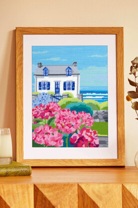 A 10-count Pénélope tapestry needlepoint canvas with a quaint seaside cottage design. Stitch this pre-printed canvas in your choice of tapestry wool or thread using half cross stitch.
