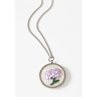 Get creative with this round pendant to embroider. Dimensions: 3 cm and comes with a chain. Not included: thread and canvas. We recommend you to use Pearl Cotton thread in size Medium 5, as well as a small white coloured canvas. Pendant made out of metal and comes with instructions.