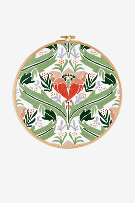 This vintage embroidery pattern, designed by Thérèse de Dillmont, features an intricate tulip design. Dillmont is one of history’s most loved embroiderers. Her Encyclopedia of Needlework, published in 1886, is still in print today. Use Mouliné Spécial threads to stitch on cushion covers, tote bags and clothing. Our patterns and quality supplies make it easy for you to complete your project. Colourfast and fade resistant DMC threads keep stitches looking vibrant for generations to come.