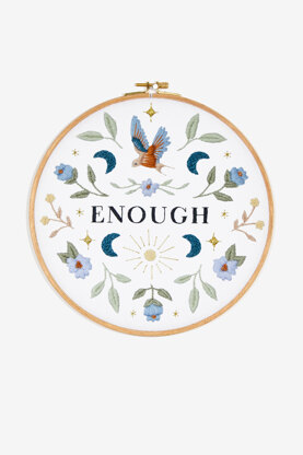 For World Mental Health Day we’ve collaborated with embroidery artist and designer Emily June to bring you a series of uplifting mantras you can stitch as part of your own self-care or to encourage loved ones. This delicate design displays the words “Enough” surrounded by beautiful nature motifs. It will make a wonderful accent on plain tote bags or kitchen linen. Our clear patterns and quality supplies make it easy for you to complete your project. Colourfast and fade resistant DMC threads keep stitches looking vibrant for generations to come.