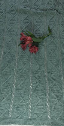 This blanket is the perfect gift for the nerdy newborn in your life. A garter stitch border and strips of lace highlight the image of a double helix. Made in machine washable cotton, the pattern is complicated enough to be fun without being taxing. If you want to make something for the grown-ups, try my DNA Scarf pattern.