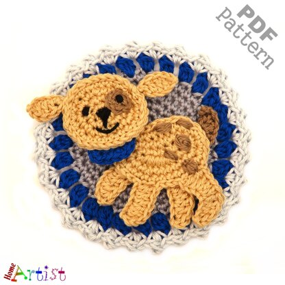 The pattern provides instructions to make a cute crochet applique that can be used in inumerable ways...decorate and personalize your favorite objects like hats, t-shirts, bags, school knap-sacks and lots of other stuff you can think of. Dog: 3 inches across by 3 ½ inches tall Button: 4 ½ inches across using 2.5 mm crochet hook but the size can be varied by using thinner or thicker yarn and types of hook. Colors can be changed according to your personal preference. The pattern is designed for worsted weight yarn and uses American English crochet terms. This crochet pattern is available for Instant Download. Once your payment is received, you will get an email with the download link and details of your order. In case of problems feel free to contact me anytime.