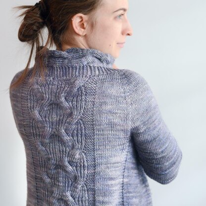 As soon as you are finished knitting, Dog Park Cardigan will become your new best friend. It’s the perfect garment to wear during casual, cozy days at home because of its extreme comfort, and it’s also utterly elegant for more sophisticated occasions. It features lovely stylish details such as a reversible shawl collar made of cables that can be worn flat or folded, long ribbing sections at the wrists and bottom, and garter stitch accents. It’s worked top-down, seamlessly, starting with the top of the collar, down to the bottom ribbing. The cable border is worked at the same time as the body, and the sleeves are worked right after.