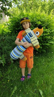 About the dog: Pillow is 32 inches (81 cm) multi-color yarn: Himalaya Dolphin Baby, Alize Velluto, YarnArt Dolce Baby.