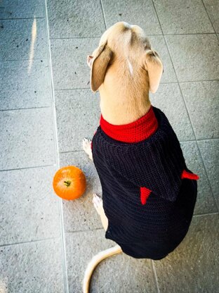 Get your furry friend ready for Halloween with this adorable crochet hooded cape and matching sweater set! The cape features a hood with playful devil horns, while the cozy cropped sweater adds a perfect pop of color for a fun and festive look.