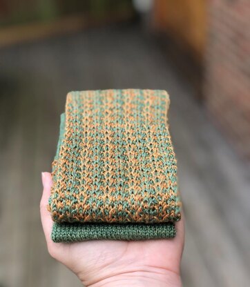 I designed this cowl on a train journey to London to celebrate my daughter’s 16th birthday as well as finishing her exams and school. The slipped stitches section is representative of the journey there and back. The stripe section is for all the sightseeing and the show we went to see. It went far too quickly and all too soon we were on our way home again. The plain sections are the lovely chilled out times we spent together in the hotel or in the restaurant.