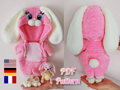 Doll clothes pattern for Lulu, Crochet Bunny doll clothes, Amigurumi doll outfit pattern for a doll 12,6 inch (English, Deutsch, Français)