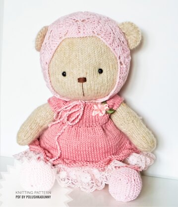 Shabby Chic Teddy Clothes Knitted Pattern INCLUDES: Pattern for pants (knitting) Pattern for boots (knitting) Pattern for a bonnet (knitting) Pattern for a dress (knitting) ABOUT